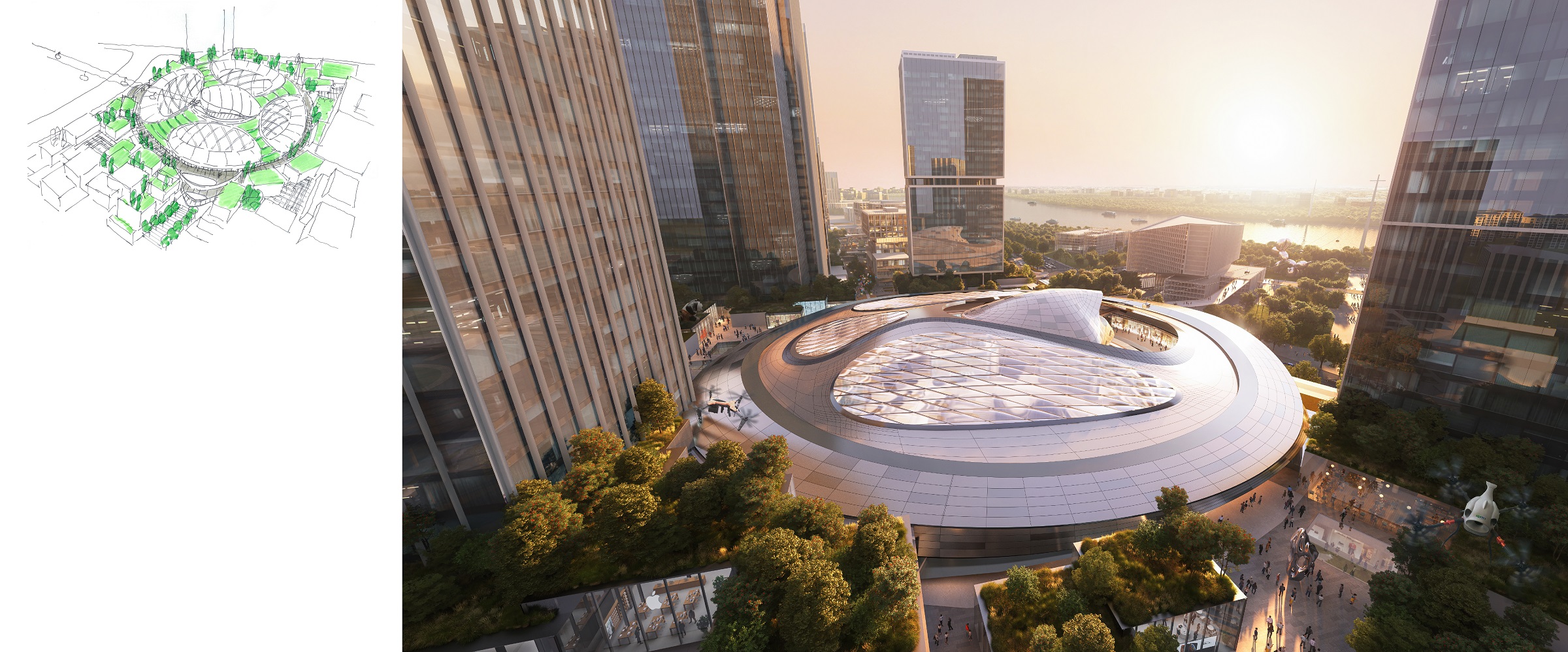 除了参与以上 C&D 地块的投标设计方案,10 Design 很荣幸已接受对其中两处地块(E&F)进行设计的委托,一系列的零售、办公园区及文化体育设施将在此落成。E&F地块的设计方案将稍后再作公布。