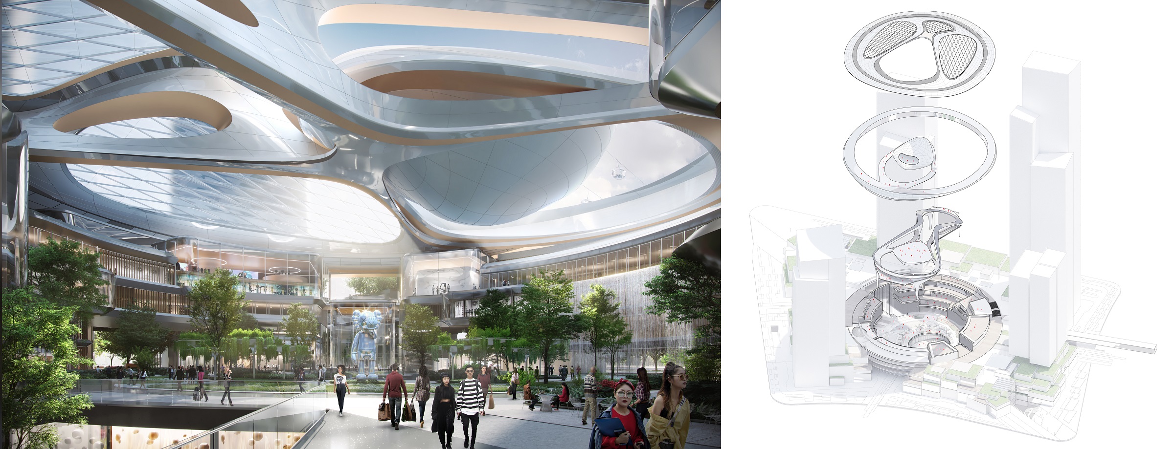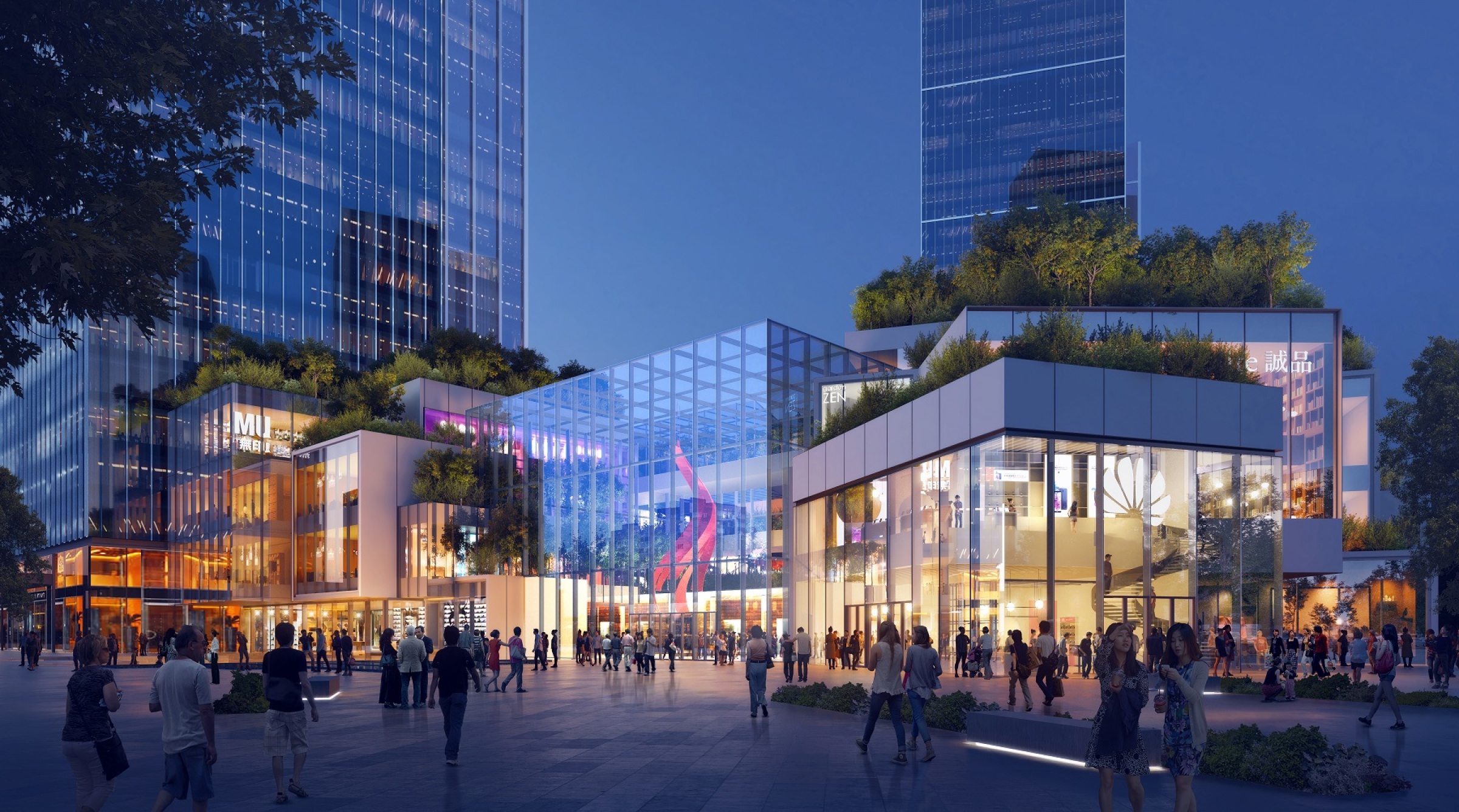 通过设计策略,旨在打造该项目为一个融合人文空间与自然的城市零售之心,成为上海徐汇区的活力之源。