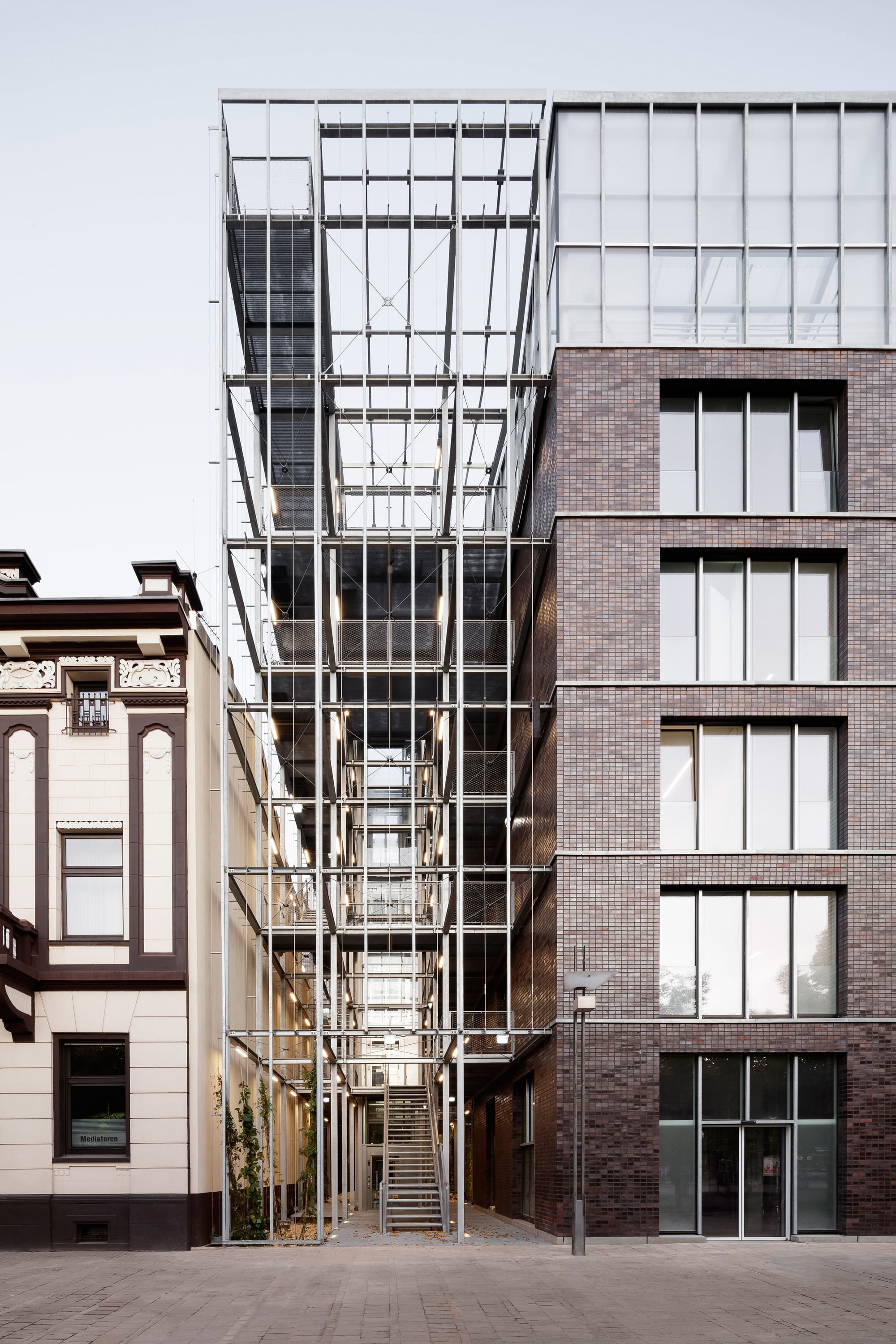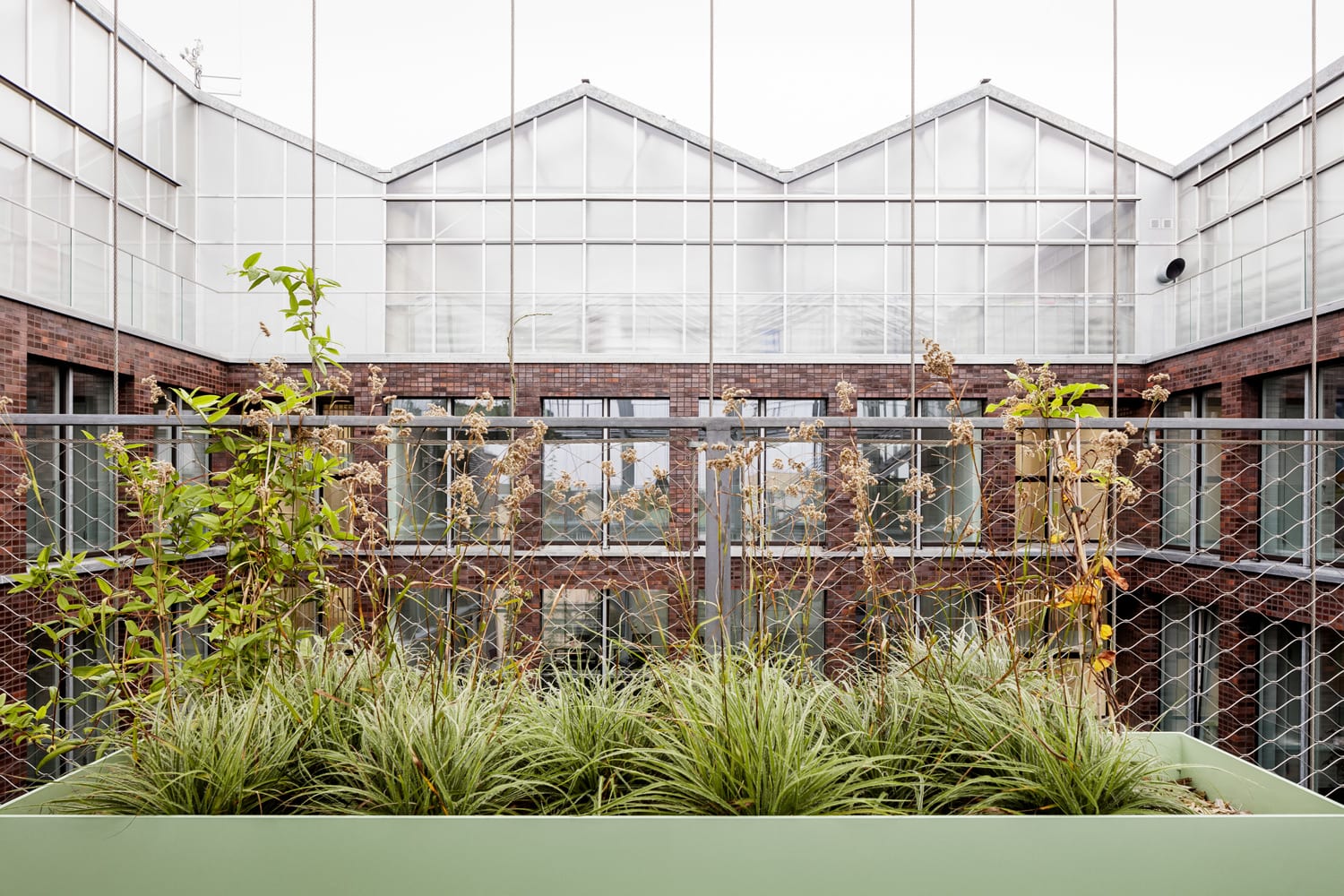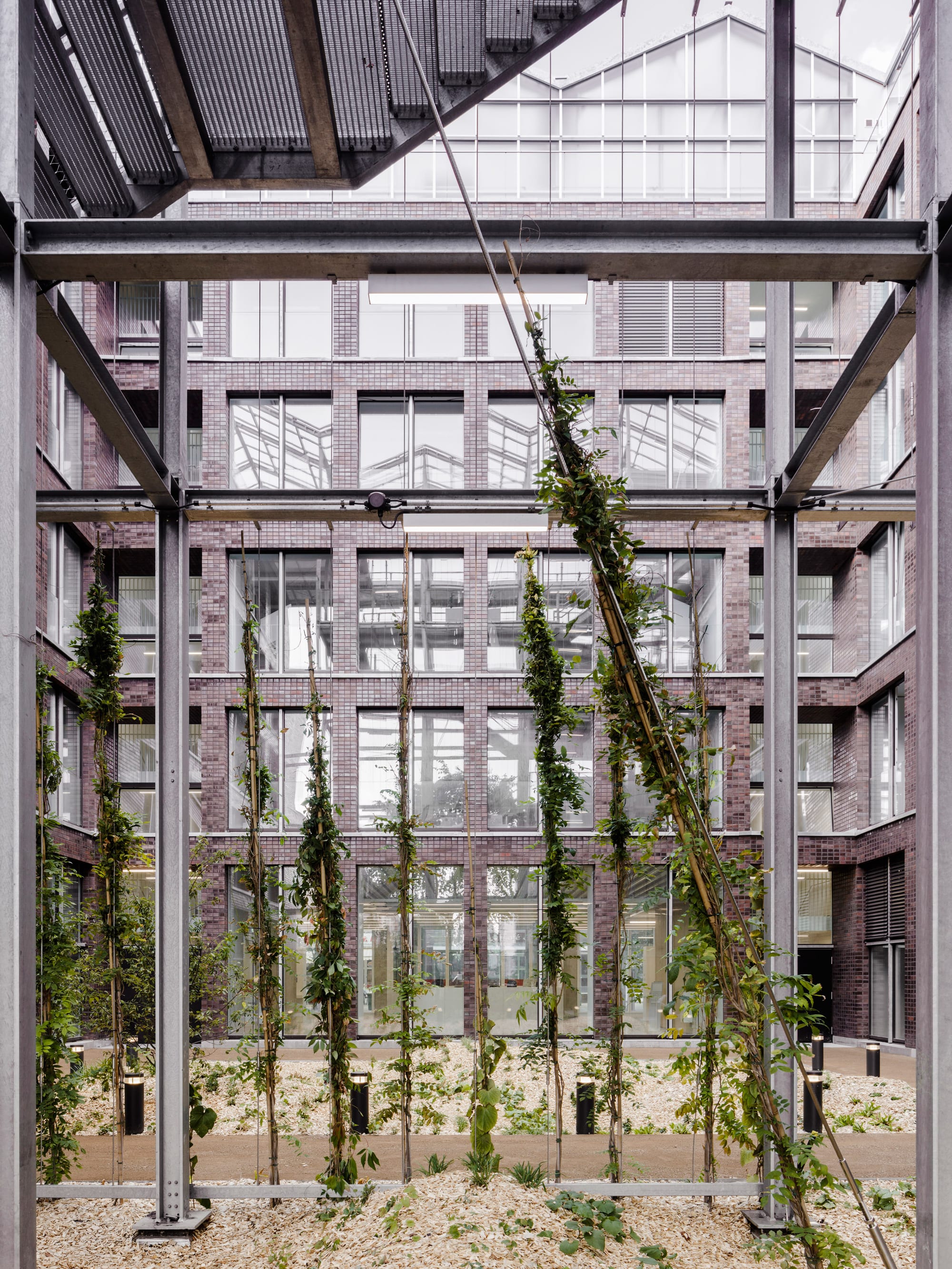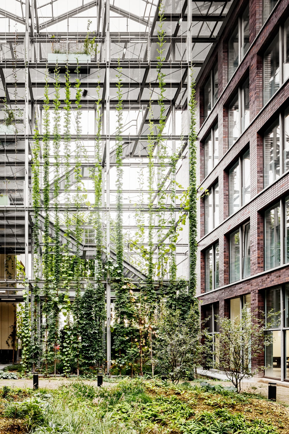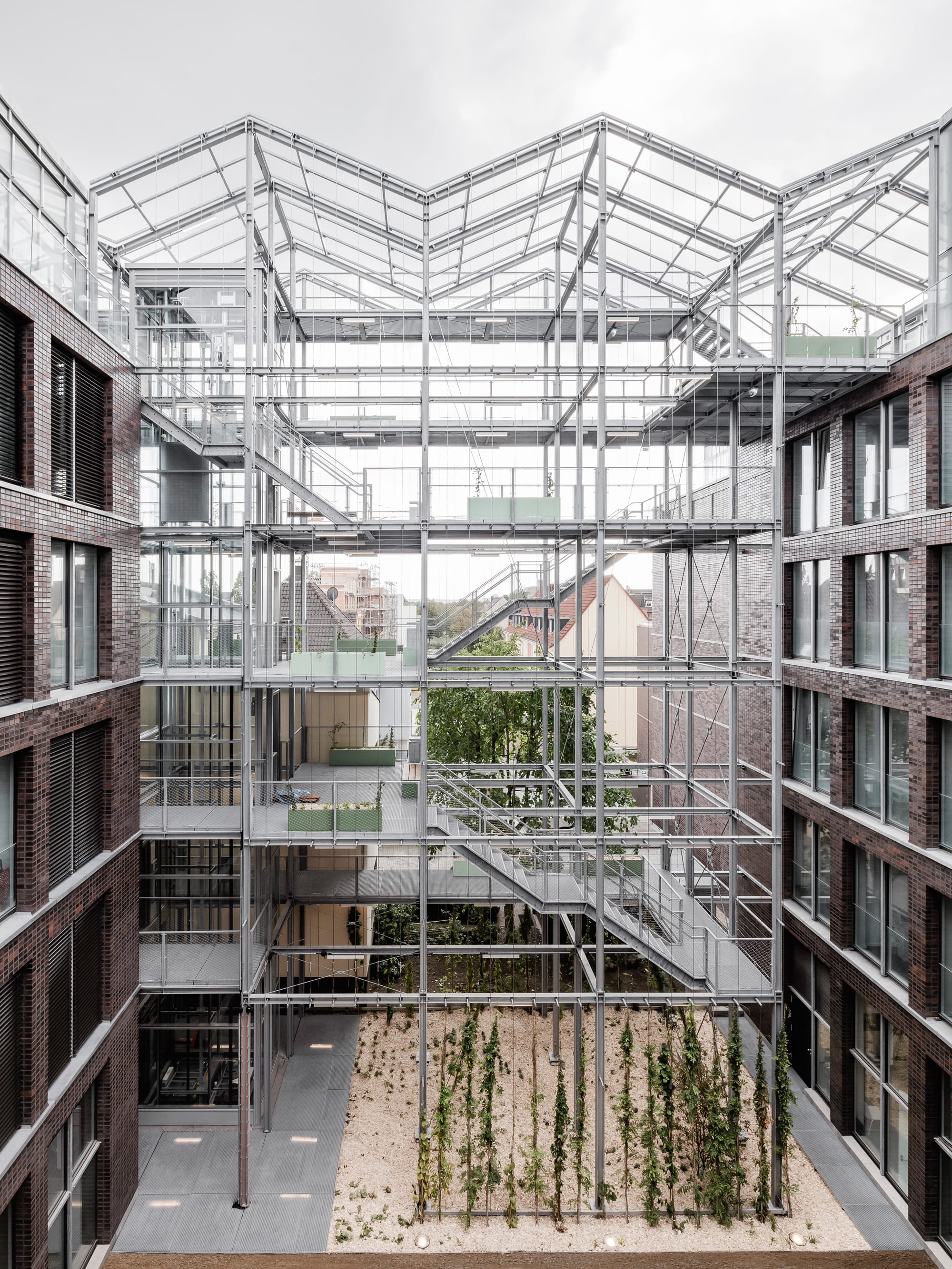 The office building in the center of Oberhausen combines the diverse functions of a public administrative building and rooftop garden in a new way, integrating features of both typologies. The tension between the physicality of the brick building and the delicate lightness of the greenhouse creates a new identity that affects the urban context of the Altmarkt, an important location in the city.