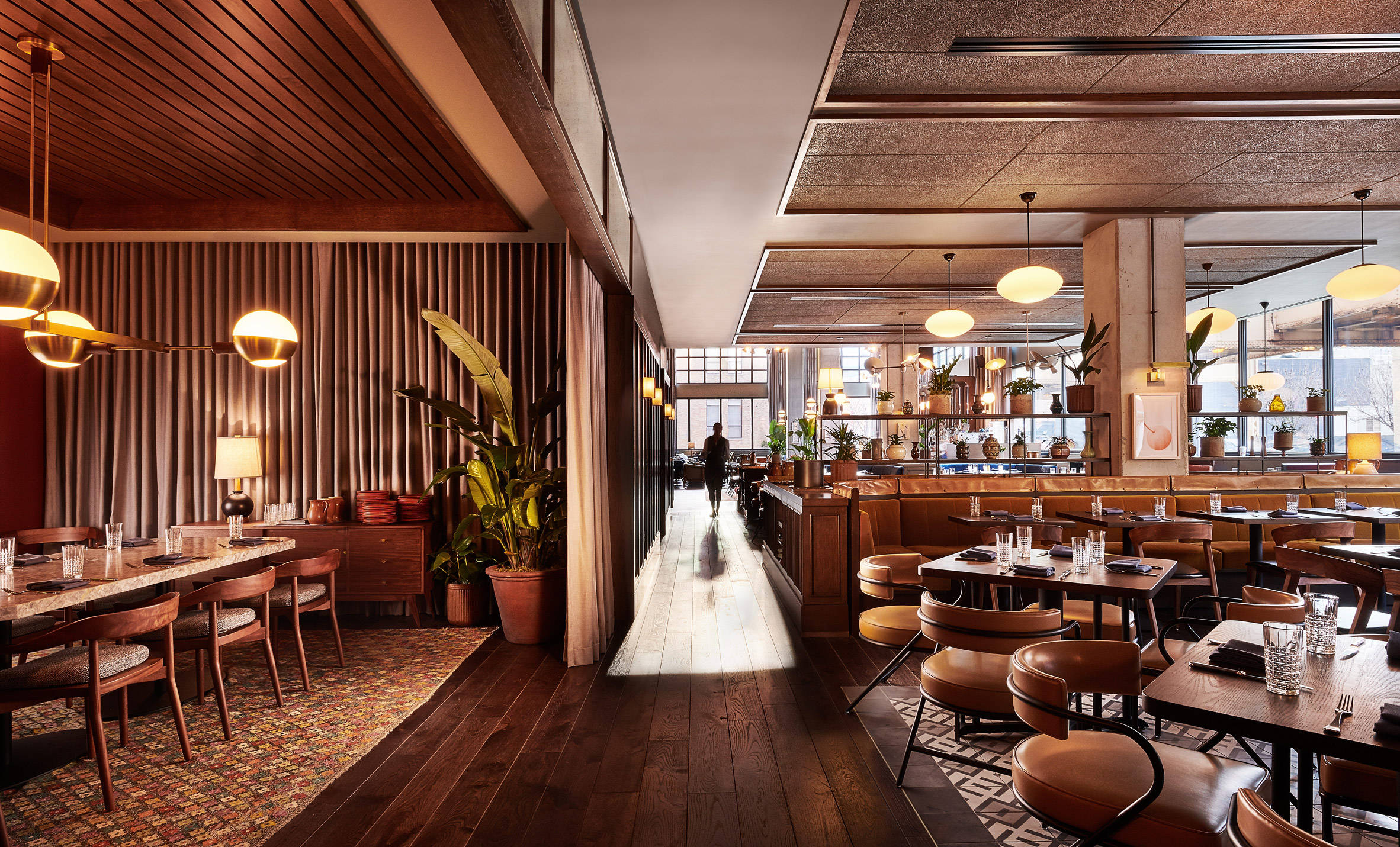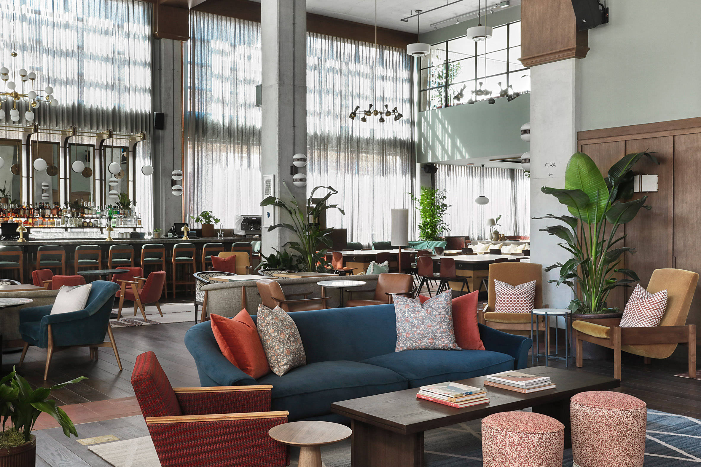 双层大堂将举办The Hoxton的首个联合概念,授予会员2200平方米的专用工作空间,包括书桌,工作室和会议区。一个名为“The Apartment”的私人活动空间俯瞰着夹层楼的大堂,从窗户俯瞰芝加哥高架L型火车站台。