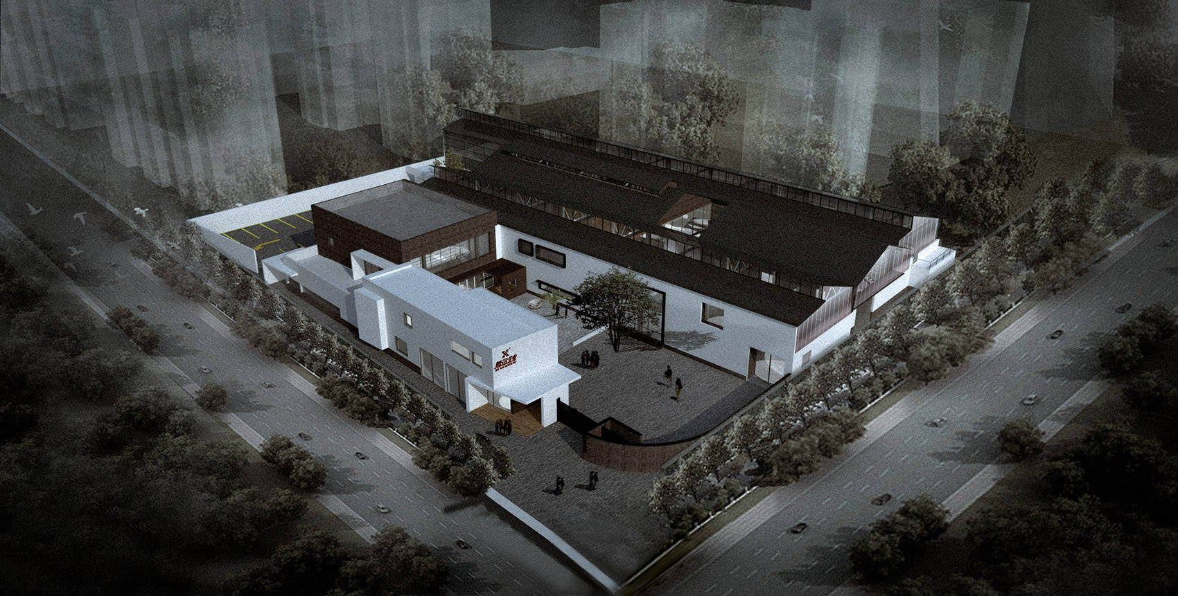 ▽改造后建筑鸟瞰图: