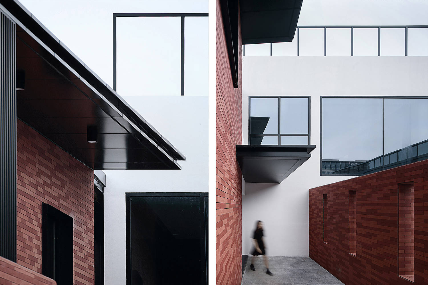 空间主材:红砖、饰面板、水泥漆、黑碳钢、铁艺、混凝土自流平、灯芯纹玻璃